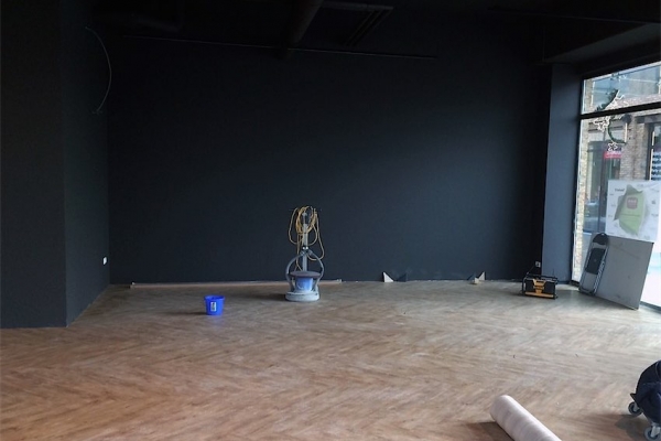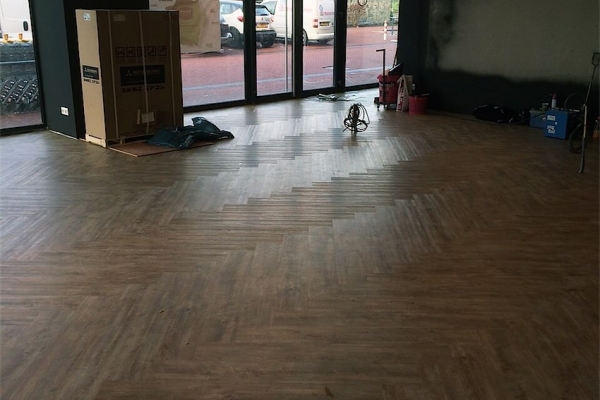 Winkelruimte met Stratoverde Luxury gelegd in visgraad motief: